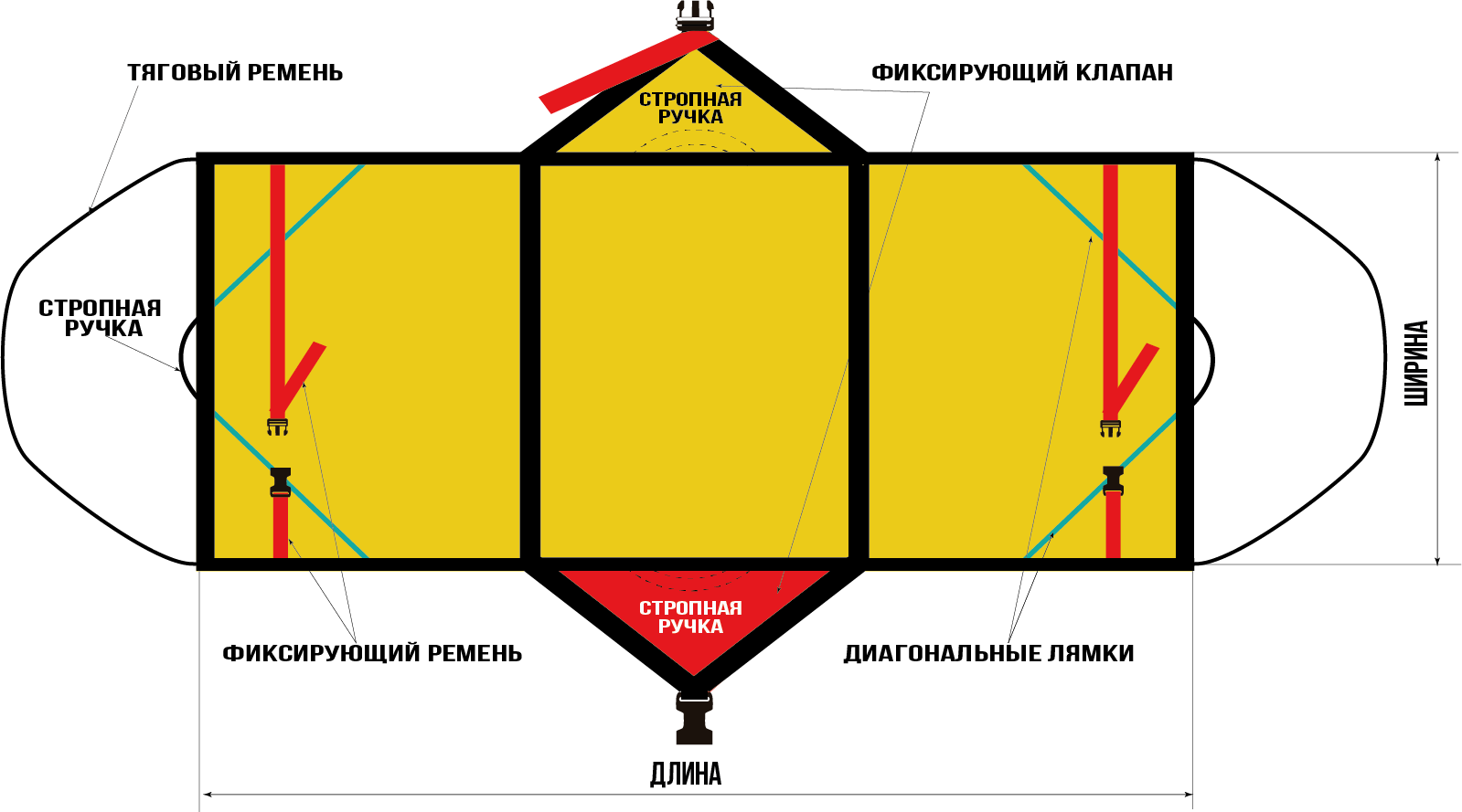 - Транспортировка изделия с человеком осуществляется путем волочения по полу или транспортировке на тележке «Шанс» за тяговые ремни.